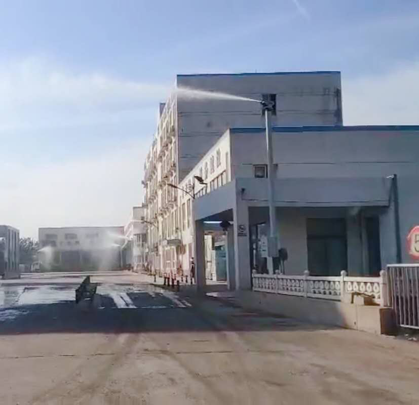 本公司生产的只能智能室外喷雾降尘系统,是一款主要针对于室外扬尘较大的场合进行快速有效的抑尘产品。水泵采用高压柱塞泵,产生高压 ,通过雾化喷嘴喷出。同时,喷嘴设计成旋转结构,能够实现很大的区域覆盖。